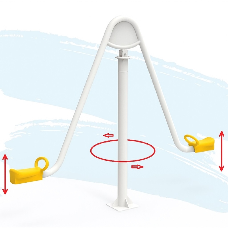 Közterületi célra ajánlott, erős igénybevételnek és az időjárás viszontagságainak kitűnően ellenálló ROZSDAMNETES ACÉLBŐL ÉS HDPE műanyagból készült rugós játék.