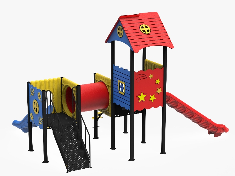 A játék központi tornyából indul egy spirál és egy egyenes csúszda , míg a kisebb toronyból szintén egy egyenes csúszda ahova lépcső vezet fel .