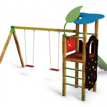 A játszótorony része az 2 hintaülőkével (ez lehet laphinta vagy bébihinta) szerelvényezett hintaállvány is.