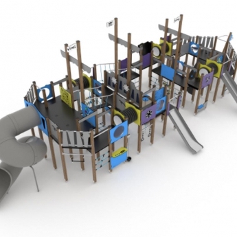 Hajó flottánk legújabb darabja a TENGER GYERMEKE ! Egy multifunkciónális gigantikus hajó mely minden korosztály vágyát kielégíti, legyen a legfiatalabb vagy már serdülő. A hajó tatjára egy zárt cső csúszdát terveztünk. Míg a hajó testét telis tele tettük a mászás , a kúszás és minden ügyesség fejlesztését elősegítő egységgel.