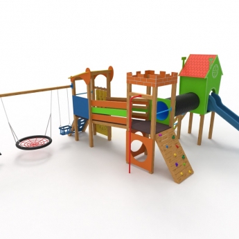 Új termék családunk legujabb eszköze a három tornyos bővített kombinált játszóvár felső kuckós toronnyal . Játszóterünk tartalmaz még egy bástyás tornyot egy ferde hidat , egy ferde tetős tornyot. És a hinta részt melyet az ár tartalmaz, de külün kérés esetén a nélkül is tudjuk szállítani.