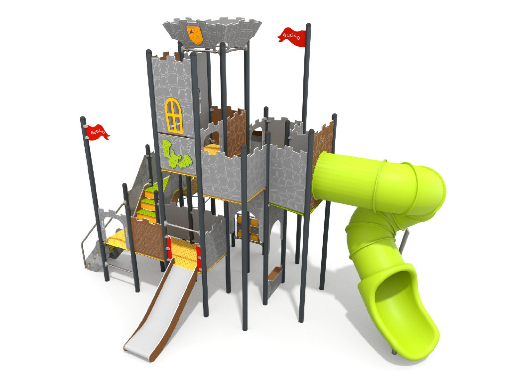 BUGLO termékcsaládunk anyagfelhasználásánal elsődleges szempont volt a kezelésmentesség ! Tornyaink tartó szerekezetek illetve a csúszdák acélból míg a kiegészítő elemek HDPE UV álló műanyagbók készülnek.