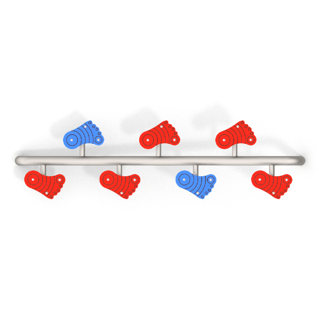 Egyensúlyozó lábnyomok játékosan fejlesztik a gyermekek egyensúly képességeit.