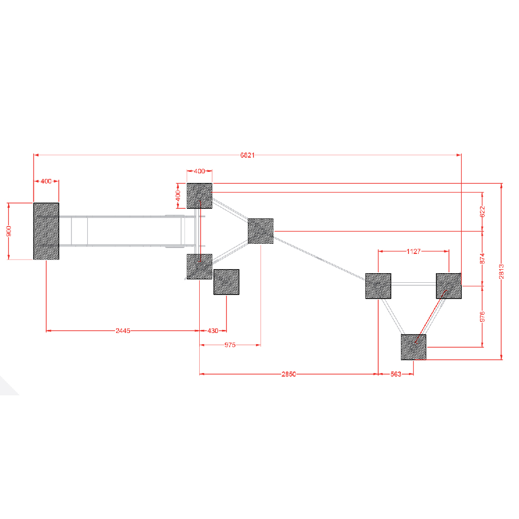 Fém dupla torony dinó csúszdával kötélhálóval Fém dupla torony dinó csúszdával kötélhálóval