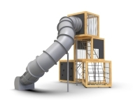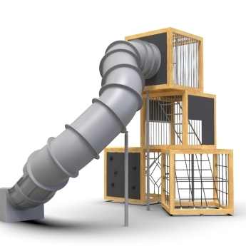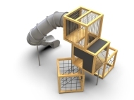 Hát most megtehetik... Kockákat tettünk egymásra , melyek egyben mászóóka ként is funckionálnak ! A lejutást persze csúszda is segíti !