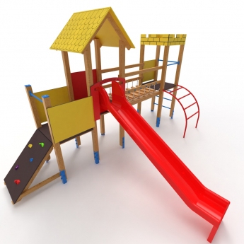 Hagyományos tornyunkhoz egy pici bástyát kapcsoltunk és egy láncos egyensúlyozón biztosítottuk a középkori bástyába való átjutást!