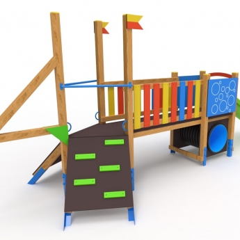 Az eszközre a feljutást két mászó fal segíti, míg a lejutást egy csúszda biztosítja.