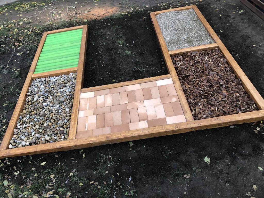 Mezítlábas parkunk nagy sláger a bölcsődékben, óvodákban. Egy olyan ösvény mely különböző felületeket tartalmaz , melyeken