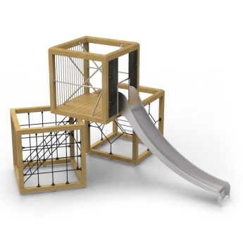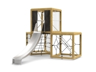 Hát most megtehetik... Kockákat tettünk egymásra , melyek egyben mászóka ként is funckionálnak ! A lejutást persze csúszda is segíti !