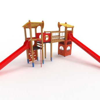 A kisebb toronyból 3 méteres a magasabb toronyból 4 méteres csúszda vezet le !