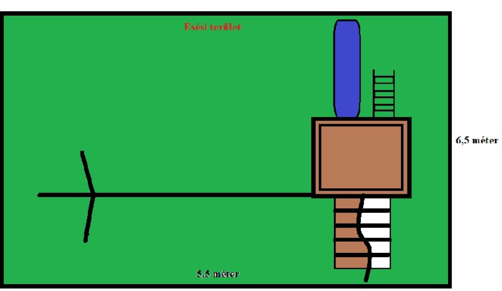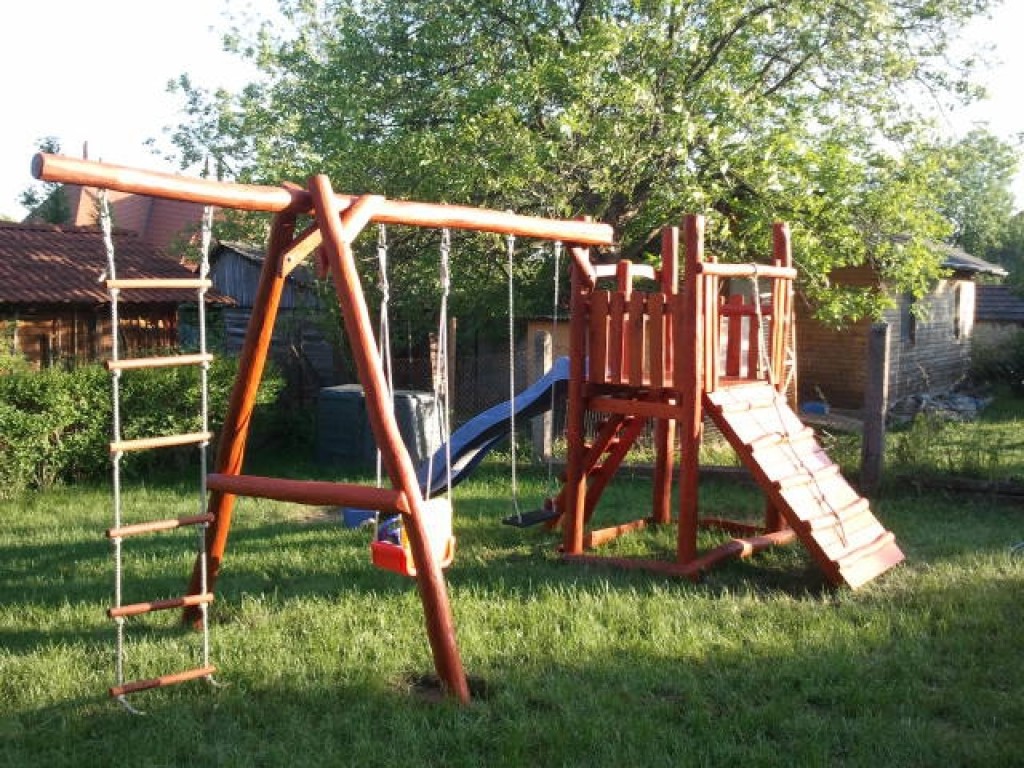 A két hinta melletti harmadik kiállásra kötéllétrát szerelünk, de természetesen egyéb játékszereket is kínálunk.