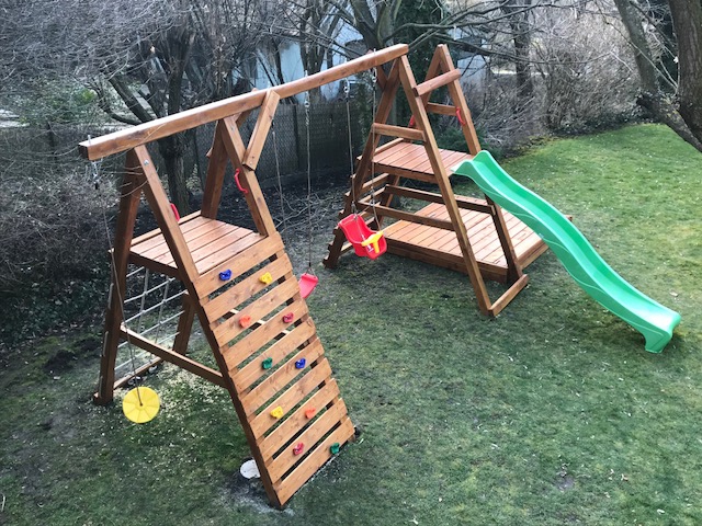 A hinta és mászóka szerelmeseinek az egész eszközt 3 méteres lábakra tettük!