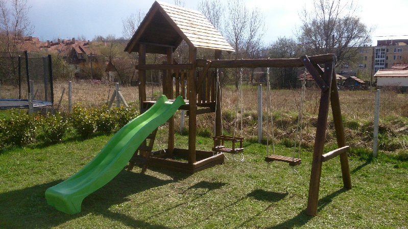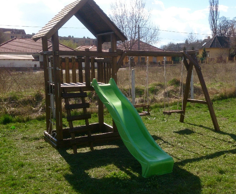 A torony oldalába kettős hintakiállású hinta rudat építünk.