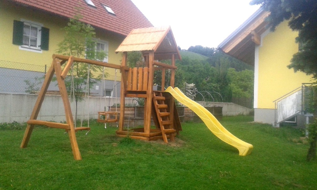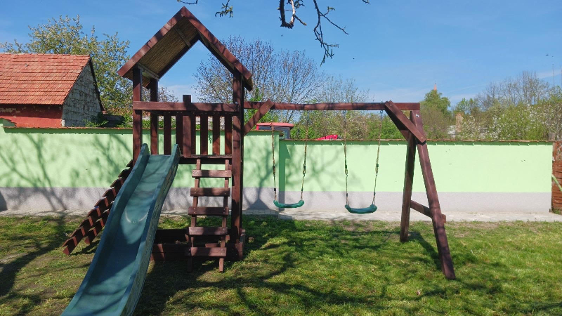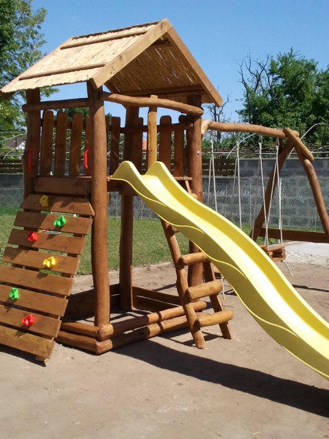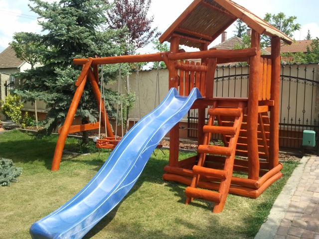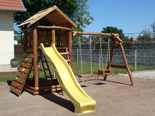 A toronyba feljutni mászófallal, vagy létrával lehet. A torony oldalába kettős hintakiállású hintarudat építünk.