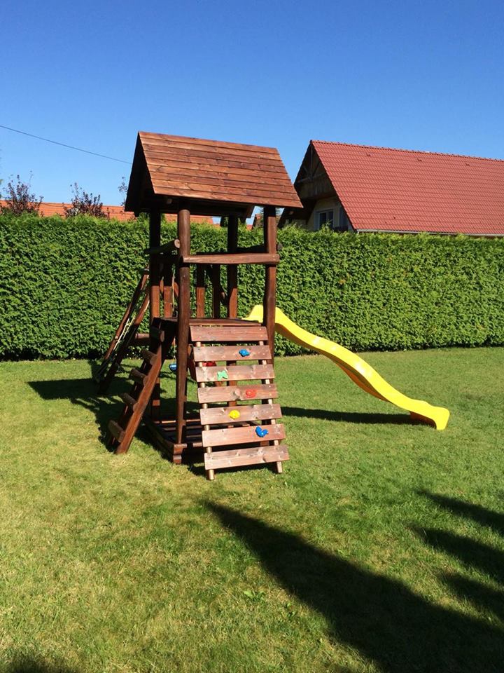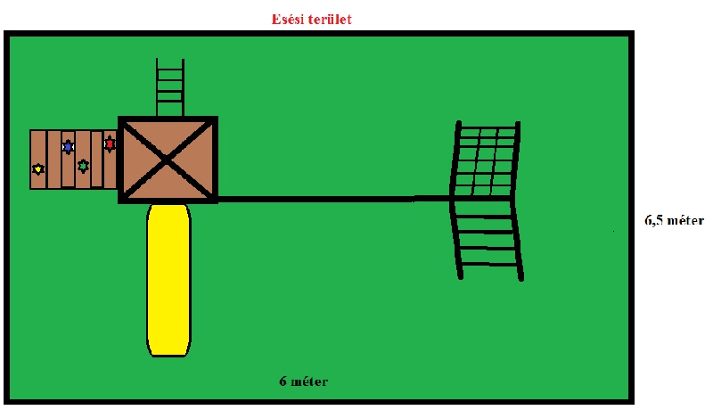 Óriás mászóka és mászó háló. Illetve a torony aljában egy homokozó található.