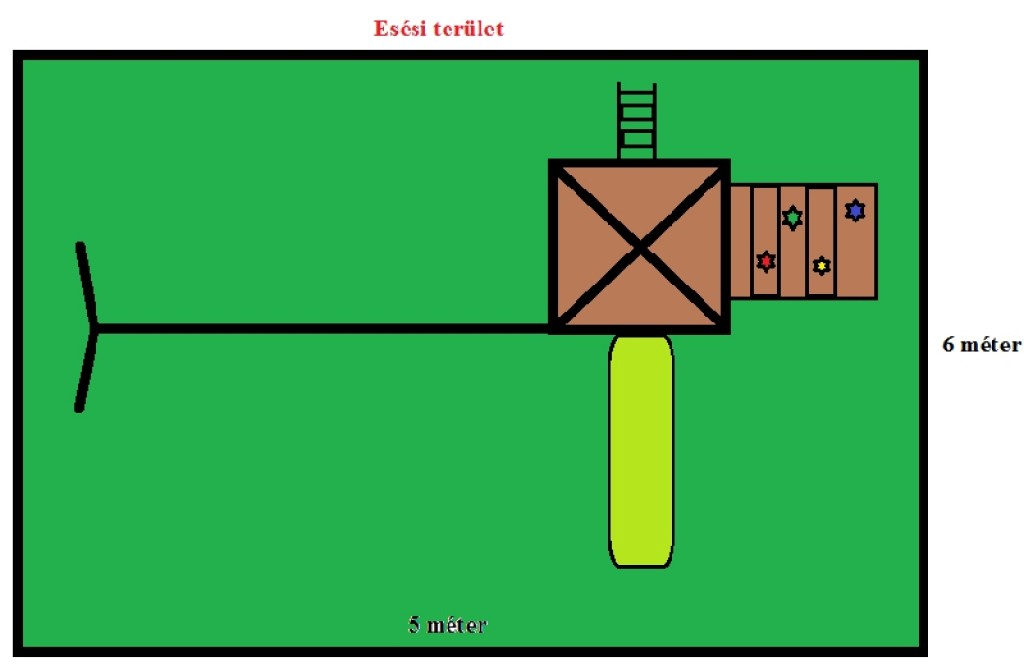 Nádfedeles kistorony mászó fallal , homokozóval,két kiállású hintával.