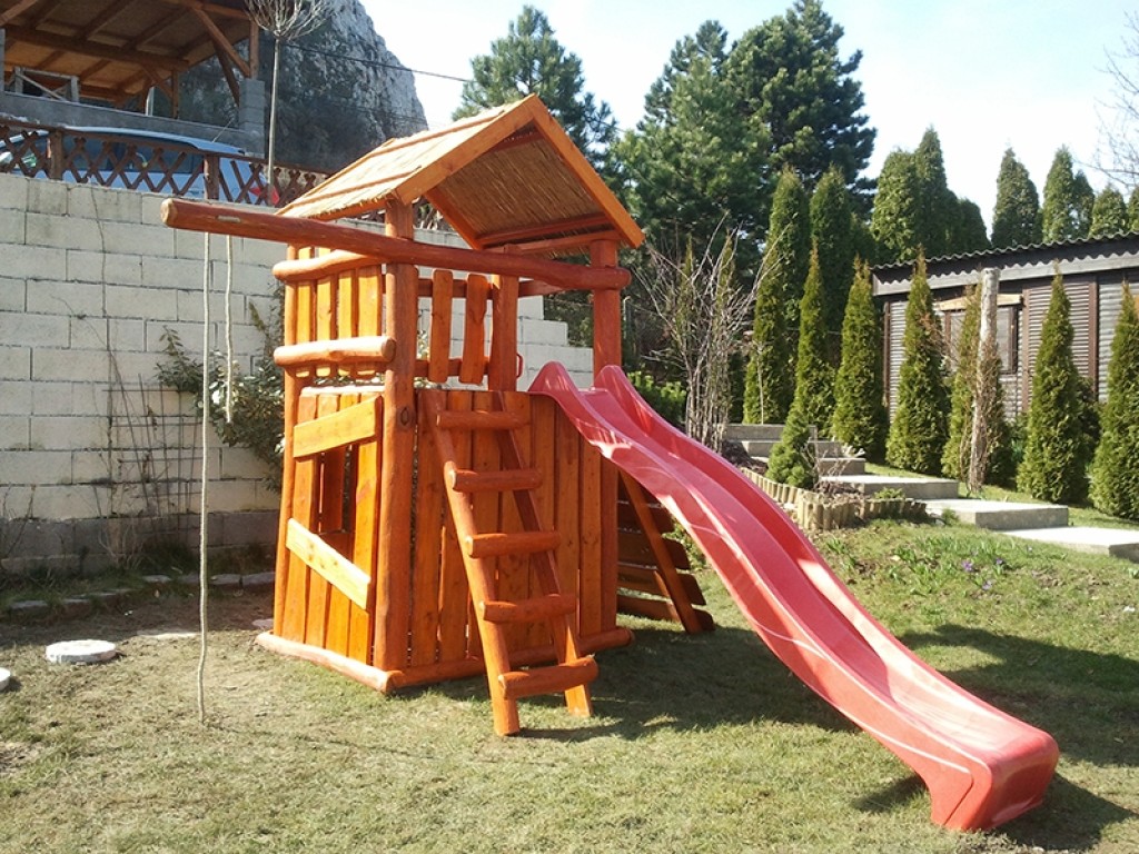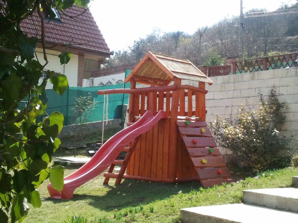 A rönkfa kiállásra mászókötelet szerelünk, de természetesen egyéb játékszereket is kínálunk.