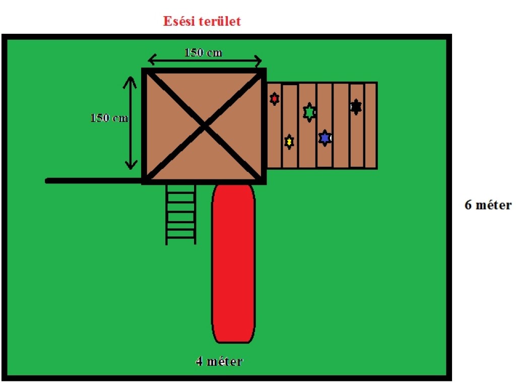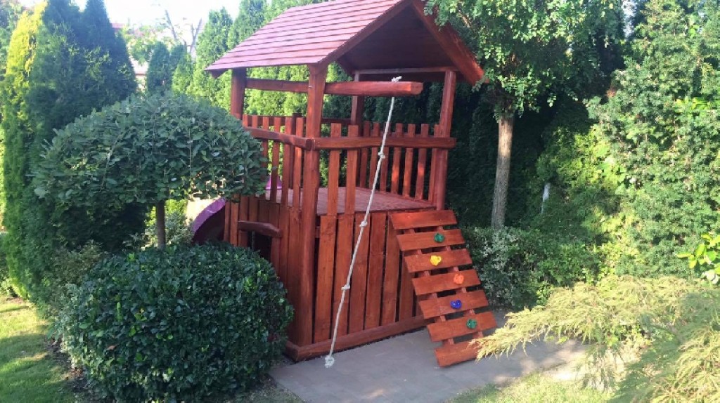 Nagy torony kuckóval, létrával és mászókötéllel.