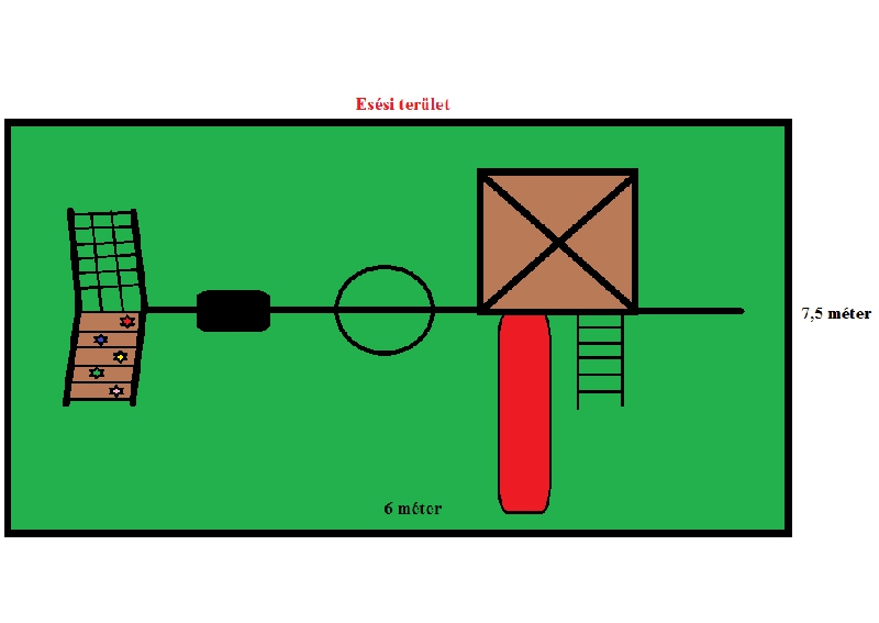 A torony másik oldalából pedig egy kis rudat vezettünk ki amire tetszőleges játékot lehet választani ( KÖTÉL, KÖTÉL LÉTRA ,TÁNYÉR HINTA )