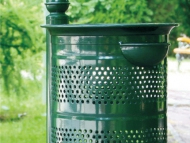 1 mm-es perforált acéllemez edény csikkelnyomóval, tűzihorganyozás után porfestve
